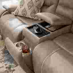 Includes:gray dual power reclining sofa • gray dual power reclining console loveseat • Cocktail Table + 2 End Tables • smoke table lamp (2)