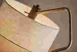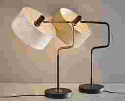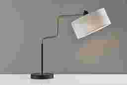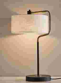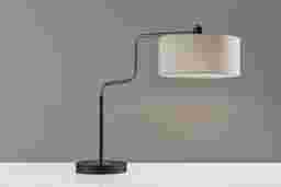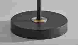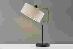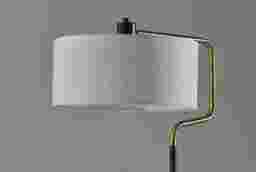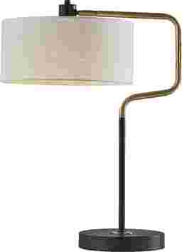 Clean lines and a modern, short drum shaped shade update the classic swing-arm style of the Lariat Circle brass lamp. A mix of black and brass metals add mid-century flare. The white fabric shade has soft flecks of natural colors, revealing a unique and beautiful texture when lit. Swing the arm to focus light where you desire making this a beautiful accent to any casual room. Partial assembly may be required.
