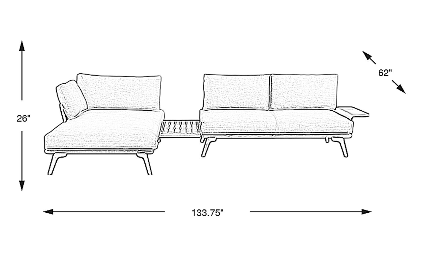 133.75"w x 62.00"d x 26.00"h