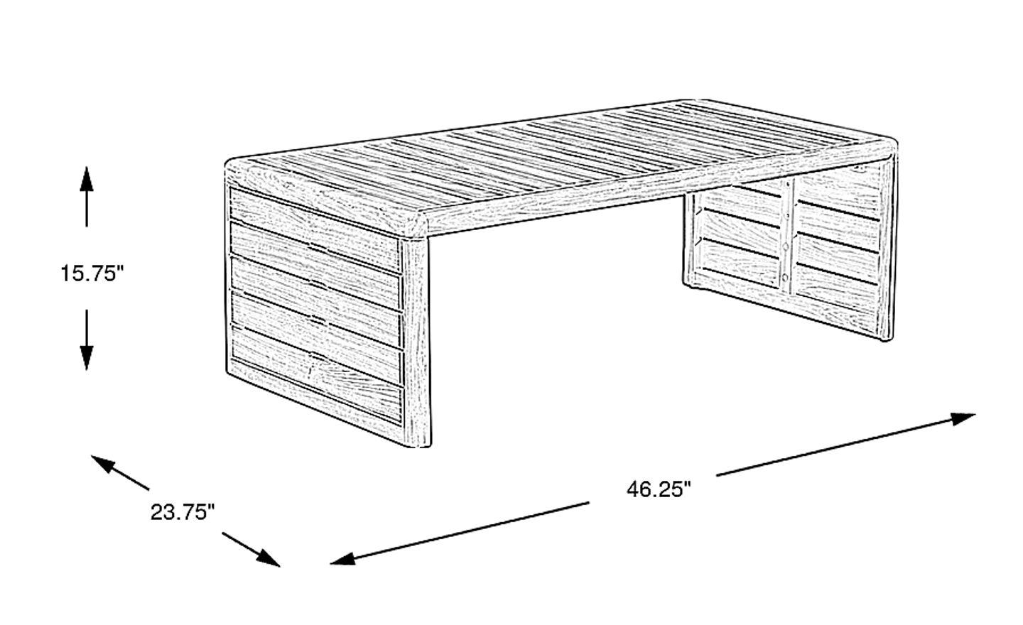 Design standards typically suggest the "2/3 rule," where the coffee table should be approximately two-thirds the length of your sofa. With a 46.25" width, this table pairs perfectly with most standard outdoor sofas and loveseats. Its 15.75" height is intentionally designed to sit slightly lower than typical outdoor cushions, maintaining a sleek, modern profile while remaining easily accessible for drinks and décor.
