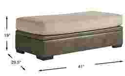 Comfy and casual, the Larna Park storage ottoman functions as a footrest, table and extra seat all in one. Upholstered in taupe-colored woven fabric, its soft cushion contrasts with the smooth brown base for a bold, striking look. The top lifts to reveal hidden storage for pillows, blankets and more. Upholstery: 100% Polyester.