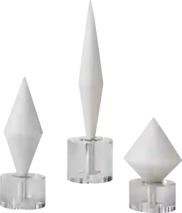 Styling a set of three sculptures is a classic design technique for creating balance and visual interest. Because these pieces feature staggered heights of 5, 10, and 14 inches, we recommend grouping them together on a mantel, coffee table, or entryway console. To achieve a professional, curated look, stagger the pieces in a triangular formation, allowing the varying heights and geometric diamond shapes to lead the eye naturally through the display.