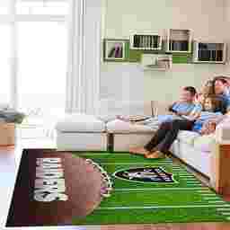 Add a touch of team spirit to your space with this vibrant 5 x 7 Las Vegas Raiders Football Field Rug. Ideal for any room where Raiders Fans gather, this rug is not only eye-catching but also practical. Its durable construction makes it perfect for high-traffic areas, and the machine-washable design ensures it stays party, pet, and kid-friendly. Plus, the high-quality backing prevents any unwanted sliding. Show your love for the Raiders with this stylish and functional rug.