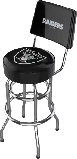 Cheer on your team in style with this Las Vegas Raiders commercial-grade chrome barstool with backrest. Crafted with durable materials and finished in your team's signature colors, this barstool delivers both comfort and pride. Customer assembly is required.
