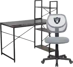 Transform your workspace with this stylish Las Vegas Raiders desk, featuring a unique space saving design and a vibrant team-colored task chair. This customizable desk allows you to tailor the shelves above and below the desktop, providing ample storage to keep you organized. With its industrial aesthetic and reclaimed laminate top, this desk effortlessly complements any room decor. Elevate your workspace while showcasing your team spirit perfect for tackling tasks or inspiring creativity. Customer assembly is required.