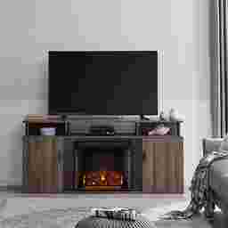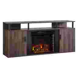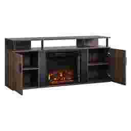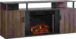Cozy up to movie night with this Latchwood I fireplace entertainment center. Two storage cabinets include adjustable shelves, tucking away electronics or blankets, showing off a sleek look while keeping you organized. Glowing faux fire logs add ambiance with flickering LED flames and lifelike embers, with or without heat. Place your television on top, or create a floating look by mounting it above. Enjoy family night in style when you gather around this fireplace media stand in your living area or media room. Customer assembly is required.