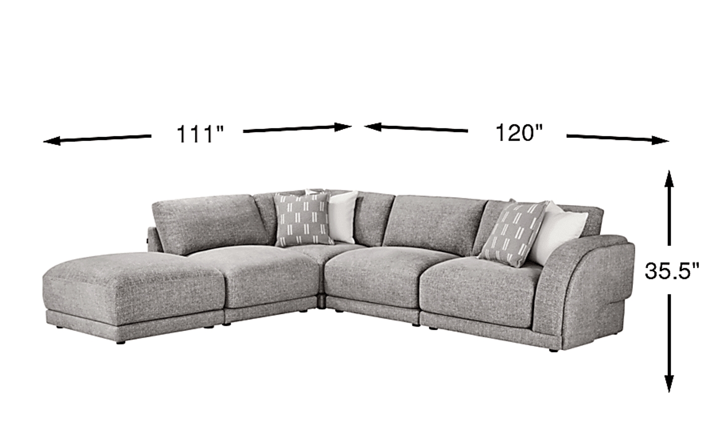 Effortlessly cool and casual, the Latham Court modular sectional lends its inviting nature to movie nights and midweek relaxation alike. Upholstered in woven gray fabric with gentle organic curves, this collection features individual seats and pieces that can be separated and recombined to fit every occasion. Distinctive radius arms feature arched wraparound details that reach from the base and sides to the back of each seat. Overstuffed seat cushions and gently sloped back cushions support a naturally relaxing sitting posture. Included is a bumper ottoman that adds an extra seat to this piece's stunning silhouette. Upholstery: 100% polyester.