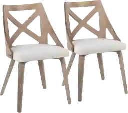 Spruce up your dining area with the Lauber II cream side chair set of 2. With elegant styling, the backrest shows off an X-shaped accent. Featuring whitewashed wood and fabric upholstery, the Lauber II beautifully straddles the line between traditional and farmhouse styles. Customer assembly is required.