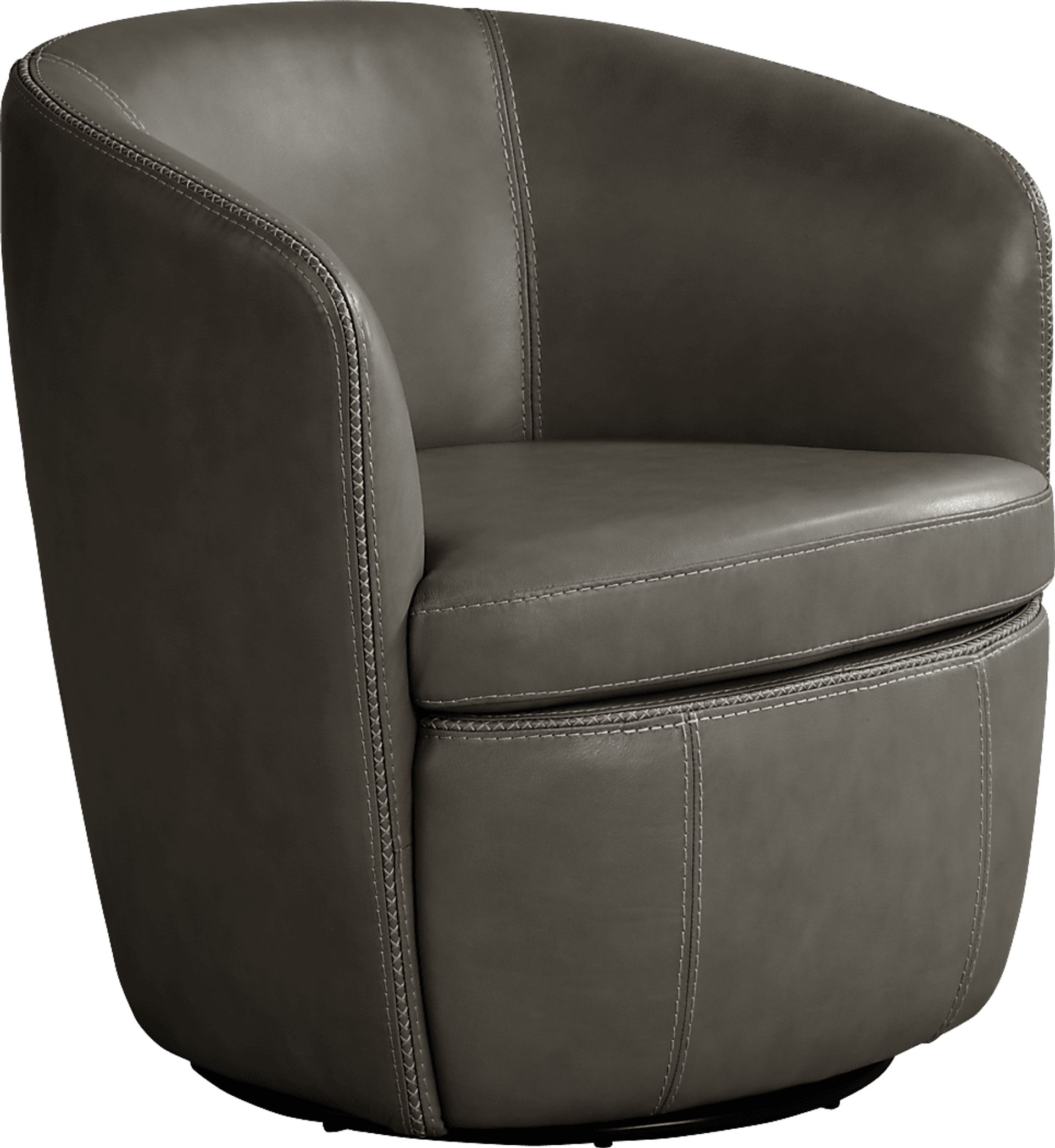 The sleek curvature and chic styling of the Laumont swivel chair adds a touch of class to any living space. Upholstered in top grain leather where the body touches, this modern piece includes a 365-swivel base for ease of movement and change of view. Curved padded arms are accompanied by full foam padding covering the frame for added comfort and visual appeal, while an intricate moccasin stitch adds a touch of glamor. Three color offerings make it a great addition to either existing sets or as a stand-alone piece.