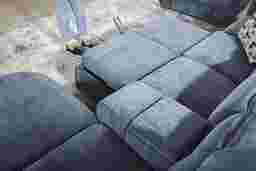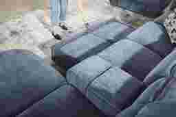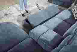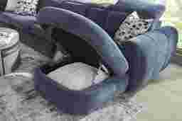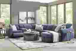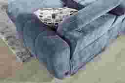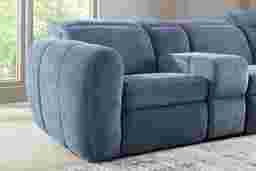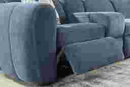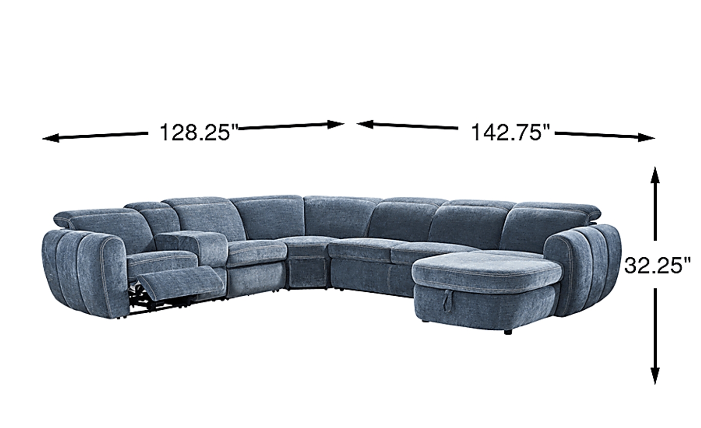 Generous in scale and rich in comfort, the Laurel Heights sectional transforms everyday lounging into an experience of relaxation and connection. Upholstered in blue woven fabric, this sectional comfortably seats up to six people. Three of the seats recline at the touch of a button, allowing you and your guests to easily kick back with power adjustable headrests and chaise-style footrests. Perfect for stowing away blankets or pillows, the chaise opens to reveal hidden storage. A pop-up sleeper in the center conveniently accommodates overnight stays. Designed for customized comfort, the ratchet-style headrests of the non-power seats are manually adjustable. Two hidden cupholders and a lift-top compartment in the console offer space to keep drinks and other items close at hand. Top stitched seams add texture and a touch of detail, while tailored mailbox arms lend a plush feel. Upholstery: 100% Polyester.