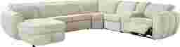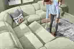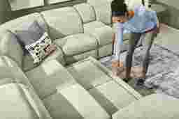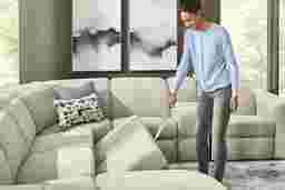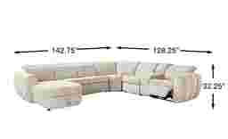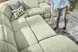 Generous in scale and rich in comfort, the Laurel Heights sectional transforms everyday lounging into an experience of relaxation and connection. Upholstered in gray woven fabric, this sectional comfortably seats up to six people. Three of the seats recline at the touch of a button, allowing you and your guests to easily kick back with power adjustable headrests and chaise-style footrests. Perfect for stowing away blankets or pillows, the chaise opens to reveal hidden storage. A pop-up sleeper in the center conveniently accommodates overnight stays. Designed for customized comfort, the ratchet-style headrests of the non-power seats are manually adjustable. Two hidden cupholders and a lift-top compartment in the console offer space to keep drinks and other items close at hand. Top stitched seams add texture and a touch of detail, while tailored mailbox arms lend a plush feel. Upholstery: 100% Polyester.