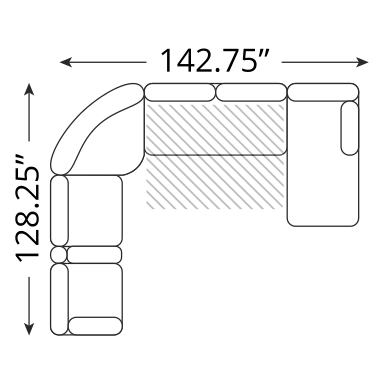 142.75"w x 128.25"d x 32.25"h