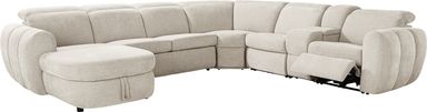 Generous in scale and rich in comfort, the Laurel Heights sectional transforms everyday lounging into an experience of relaxation and connection. Upholstered in gray woven fabric, this sectional comfortably seats up to six people. Three of the seats recline at the touch of a button, allowing you and your guests to easily kick back with power adjustable headrests and chaise-style footrests. Perfect for stowing away blankets or pillows, the chaise opens to reveal hidden storage. A pop-up sleeper in the center conveniently accommodates overnight stays. Designed for customized comfort, the ratchet-style headrests of the non-power seats are manually adjustable. Two hidden cupholders and a lift-top compartment in the console offer space to keep drinks and other items close at hand. Top stitched seams add texture and a touch of detail, while tailored mailbox arms lend a plush feel. Upholstery: 100% Polyester.
