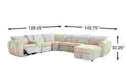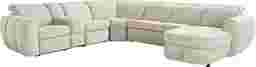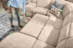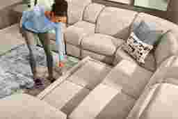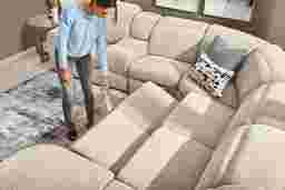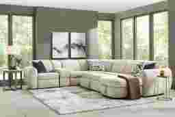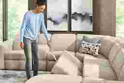 Generous in scale and rich in comfort, the Laurel Heights sectional transforms everyday lounging into an experience of relaxation and connection. Upholstered in gray woven fabric, this sectional comfortably seats up to six people. Three of the seats recline at the touch of a button, allowing you and your guests to easily kick back with power adjustable headrests and chaise-style footrests. Perfect for stowing away blankets or pillows, the chaise opens to reveal hidden storage. A pop-up sleeper in the center conveniently accommodates overnight stays. Designed for customized comfort, the ratchet-style headrests of the non-power seats are manually adjustable. Two hidden cupholders and a lift-top compartment in the console offer space to keep drinks and other items close at hand. Top stitched seams add texture and a touch of detail, while tailored mailbox arms lend a plush feel. Upholstery: 100% Polyester.