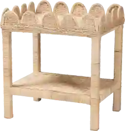 Cultivate a feel of timeless serenity in your space with the stunning Lauterbur natural end table. This bohemian piece consists of a solid mahogany wood frame wrapped in handcrafted natural rattan by skilled artisans. Its broad tabletop is bordered by raised, scalloped edges that create a captivating display of exquisite geometry. The Lauterbur will arrive fully assembled and features an open shelf between its legs to beautifully organize your belongings. Beautifully adapted to serve as a nightstand, end table, or entryway accent, the Lauterbur rejuvenates any arrangement. Rattan is a product of nature and may have variations in areas such as, but not limited to, color, pattern, grain and texture. The hair-like strands of rattan/rattan-fiber are common due to the nature of the material.
