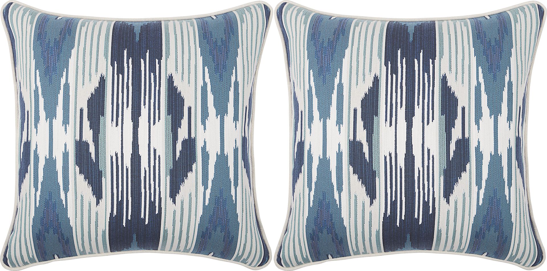 Absolutely. These pillows feature a coastal style that perfectly complements beachfront or waterfront homes. The performance fabric is particularly well-suited for humid climates as it is designed to resist the elements that typically cause mold or mildew in traditional fabrics. The 19-inch square size and durable knife-edge finish—a clean, tapered edge without decorative cording—make them a sturdy yet stylish addition to any outdoor seating arrangement in a coastal environment.
