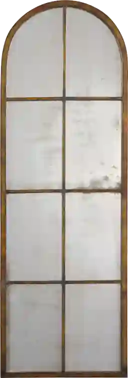 This mirror features a forged iron frame, which provides exceptional structural integrity and weight compared to standard plastic or thin wood alternatives. Forged iron is highly durable and resistant to warping, ensuring that the mirror remains perfectly flat for a clear, distortion-free reflection over time. The substantial nature of the iron also allows for the intricate arched detailing to maintain its crisp, architectural shape.