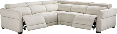 Where sleek refinement meets next-level comfort, the Layton collection is ready to redefine relaxation with an outstanding pedigree of form and function. Upholstered in soft beige chenille, this piece brings modern comfort and transitional charm to any living room. Featuring a left arm facing dual power reclining loveseat with two independently controlled recliners, a corner wedge with deep, irresistible seating, and a right arm facing dual power reclining loveseat with one additional recliner, the sectional is perfect for everything from lounging solo to hosting friends and family. With the touch of a button, the headrests and footrests can be adjusted to your ideal position for a fully personalized lounging experience. Above all else, with its thoughtful construction and timeless look, this piece transforms your space into a sanctuary for unwinding in style. Upholstery: 100% Polyester. Accent pillows not included.