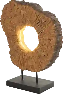 The Lazgi Brown Lamp is designed with timeless sophistication, rich old-world textures and warm hues come together for a refined classic taste of luxury. Made from high-quality resin, this brown lamp is both durable and stylish. It features a beautiful textured brown finish with a matte black base. This lamp includes a unique round cutout in the center and a sleek black base that brings a unique touch to your space. Partial assembly may be required.