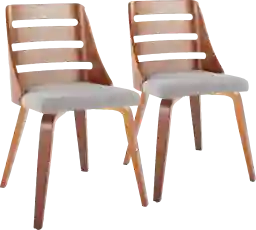 These chairs utilize walnut wood in the backrest, a material highly valued in furniture making for its natural durability and resistance to wear. The seats are finished in a tightly woven gray fabric, which offers a sophisticated texture while providing the resilience needed for a high-traffic dining environment. This blend of premium wood and sturdy textiles ensures the chairs remain a staple in your home for years to come.