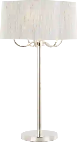 Enhance the look of your space with the Leclair Cove lamp. This beautiful lamp features a candelabra style body with a polished nickel finish that compliments the scalloped shape and hardback linen shade. Add some style and function to any space with this unique lamp. Partial assembly may be required.