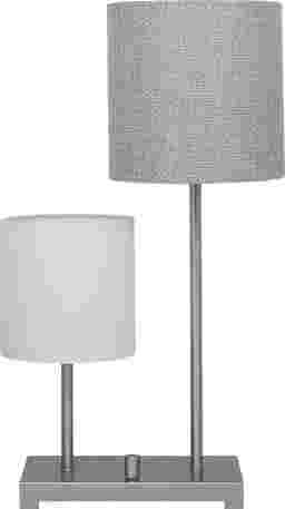 The Leesa lamp exudes contemporary character thanks to its sleek gray base and dual barrel shades. It also boasts a three-way switch for adjustable brightness and takes two bulbs up to 60 watts.