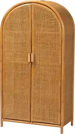 Cater to your needs while delighting in exotic design with the lovely Lekehia brown storage cabinet. This bohemian piece is handcrafted from natural rattan. The doors open to reveal four spacious shelves perfect for organizing and decluttering busy rooms. The Lekehia will arrive fully assembled and features woven embellishments within its frame to highlight the rustic flair of the piece. Accentuated handles complete the look, making the Lekehia a handy and eye-catching addition to any layout. Rattan is a product of nature and may have variations in areas such as, but not limited to, color, pattern, grain and texture. The hair-like strands of rattan/rattan-fiber are common due to the nature of the material.