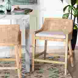 Elevate the atmosphere of your space with the rustic refinement of the Lemonbeat natural counter height stool. This bohemian piece consists of a solid mahogany wood frame wrapped in sustainably sourced natural rattan. The Lemonbeat will arrive fully assembled and is fitted with an ergonomic footrest to encourage casual comfort. A fantastic expression of exotic leisure, this stool uplifts any occasion.