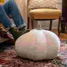 Meet the Leoze II Pumpkin Pouf. The cozy, versatile accent piece your autumn (and beyond) has been waiting for. With its charming pumpkin-inspired shape and clever foldable stem that tucks neatly inside, this pouf is equal parts stylish and functional. Use it as a footrest, an extra seat, or simply as a festive statement piece to elevate your seasonal decor. The Pumpkin Pouf fits seamlessly into any space. Filled with firm, supportive microbeads that can hold up to 350 lbs without losing shape, it delivers lasting comfort. The soothing fill also provides gentle, therapeutic relief when you kick up your feet. Customer assembly is required.