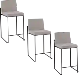 Contemporary elegance at its finest, the Leserna II Gray Counter Height Stool, Set of 3 features an extra-wide and extra comfortable upholstered seat, a high padded backrest, and a stylish metal frame. The perfect contemporary counter stool, the Leserna is available in a variety of sleek color combinations, choose the look that best fits your dining space. Customer assembly required.