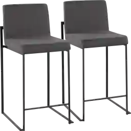 Modern elegance at its finest, the Leserna III counter stool features an extra-wide and extra comfortable upholstered fabric seat, a high padded backrest, and a stylish frame. The perfect contemporary counter stool, the Leserna III has a black metal frame that will enhance any space. Customer assembly is required.