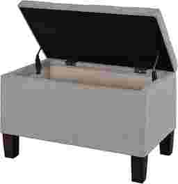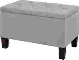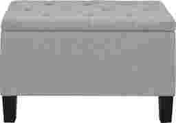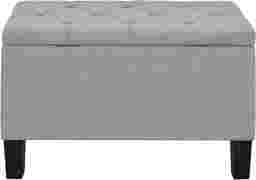 Versatile and functional, this storage bench offers an understated traditional elegance to any space in your home. With a padded, diamond tufted seat and hinged lid revealing ample storage space, this bench works great at the end of the bed or anywhere that extra seating or storage is needed. Upholstered in clean, soft fabric in neutral tones, this is the ideal piece for many different home decor styles. Constructed with quality materials, supported with square tapered wood legs, and air holes in the bottom of the bench ensure air flow even if the lid is shut, this storage bench is one you'll want in every room. Customer assembly is required.