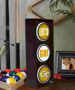 Let's glow Georgia Tech! Game time gets a little brighter with this 15-watt light that's cool for day or night. Illumination starts with the word "Let's" then "Go" then bingo-the Georgia Tech logo! The rotating lenses and toggle on/off switch makes it easy to place on a desk, shelf or hang on a wall. Now you can always root for your favorite team to win collegiate football!