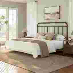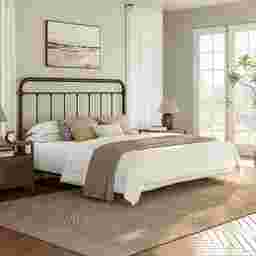 Metal is one of the most durable and pet-friendly materials for bedroom furniture. Unlike upholstered headboards, which can trap pet hair, dander, and odors or suffer snags from claws, this metal headboard is resistant to scratches. The dark bronze finish is also exceptionally easy to maintain in high-traffic households.