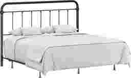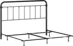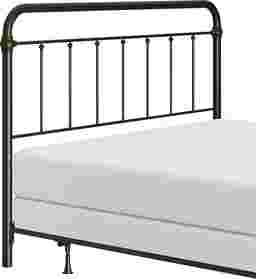 This Leveni king-size metal headboard adds a touch of vintage style to any bedroom, featuring castings and fittings that seamlessly complement its rounded square design. Elegant and timeless, the dark bronze finish is a versatile choice that fits into a wide variety of decor styles and color schemes. Includes headboard and bed frame. Box spring and mattress required; not included. Customer assembly is required.
