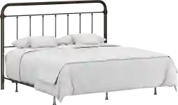 This Leveni king-size metal headboard adds a touch of vintage style to any bedroom, featuring castings and fittings that seamlessly complement its rounded square design. Elegant and timeless, the dark bronze finish is a versatile choice that fits into a wide variety of decor styles and color schemes. Includes headboard and bed frame. Box spring and mattress required; not included. Customer assembly is required.