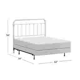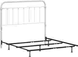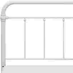 This Leveni full/queen-size metal headboard adds a touch of vintage style to any bedroom, featuring castings and fittings that seamlessly complement its rounded square design. Elegant and trendy, the white finish is a versatile choice that fits into a wide variety of decor styles and color schemes. Includes headboard and bed frame. Box spring and mattress required; not included. Customer assembly is required.