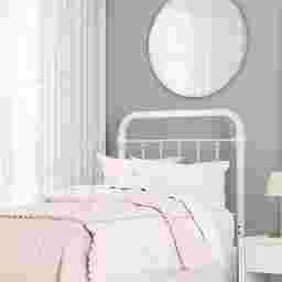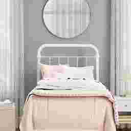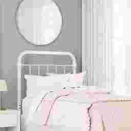A metal headboard is an excellent, high-durability choice for a child's or teen's room. Unlike upholstered options that can trap allergens or wood that may be prone to scuffs, the sturdy metal construction and rounded castings of this piece are built to withstand daily use. Additionally, the non-porous surface is easy to sanitize, making it a hygienic option for younger sleepers.