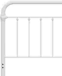 This Leveni twin-size metal headboard adds a touch of vintage style to any bedroom, featuring castings and fittings that seamlessly complement its rounded square design. Elegant and trendy, the white finish is a versatile choice that fits into a wide variety of decor styles and color schemes. Includes headboard only. Frame sold separately. Box spring and mattress required; not included. Customer assembly is required.