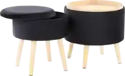 Get style and function in one with the Leverde storage ottoman set . This multi-use set includes a larger ottoman with tray top lid and a matching stool with lift-off lid for extra storage. Customer assembly is required.