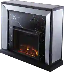 This console features a high-quality faux marble surround. This material provides the classic, sophisticated aesthetic of authentic marble while being more resistant to staining and significantly lighter, which makes the unit easier to position within your home. The modern design is further elevated by mirrored panels and a sleek black finish.