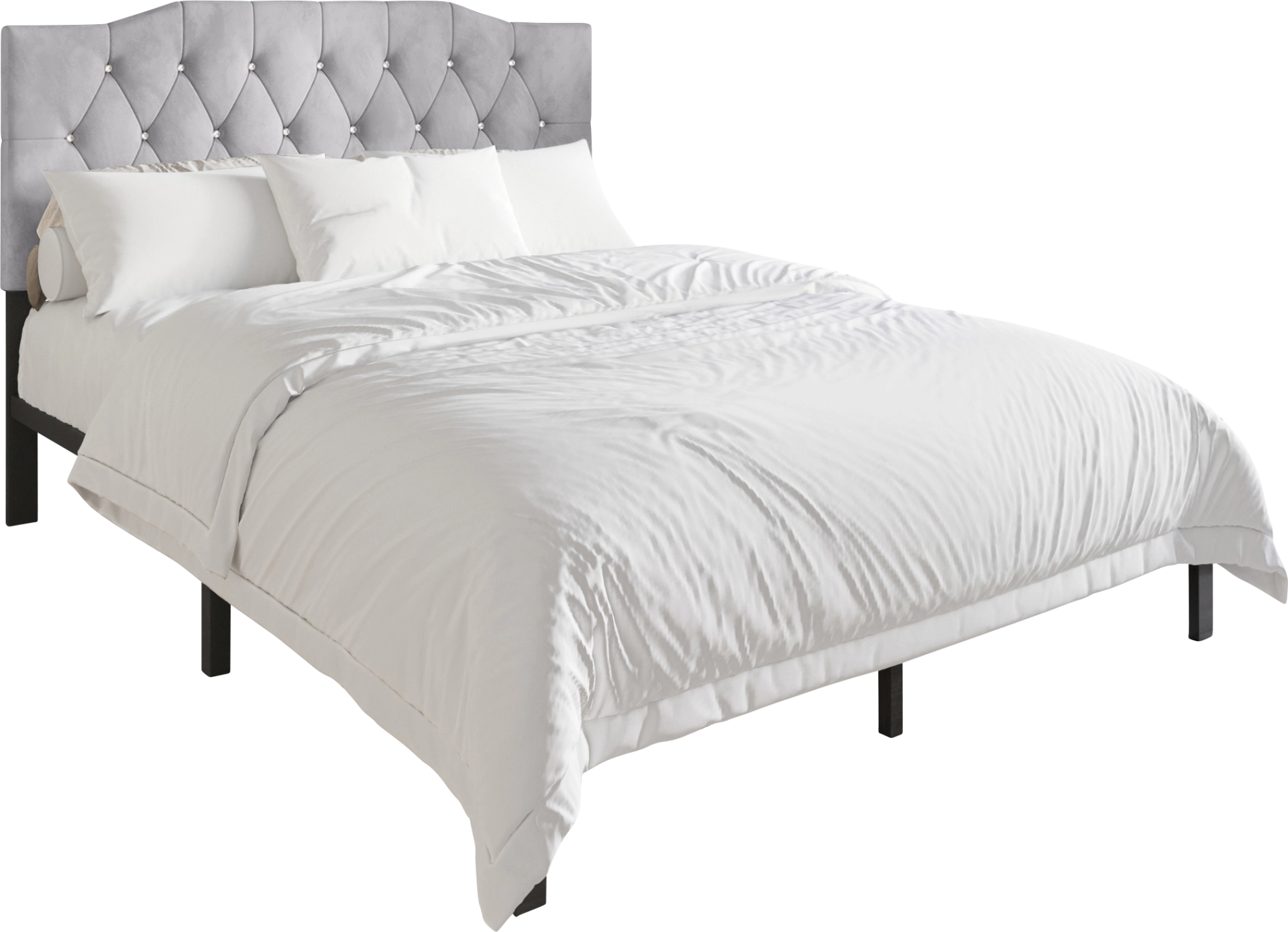 Finding the gorgeous Leveson upholstered bed with excellent quality materials that ensures a good night's sleep This modern upholstered bed frame with luxurious look crystal button-tufted diamond stitching headboard absolutely the ideal choice to blend into any home decoration style and become an elegant embellishment of your room Get this bed frame with both quality and stylish design now. Customer assembly is required.