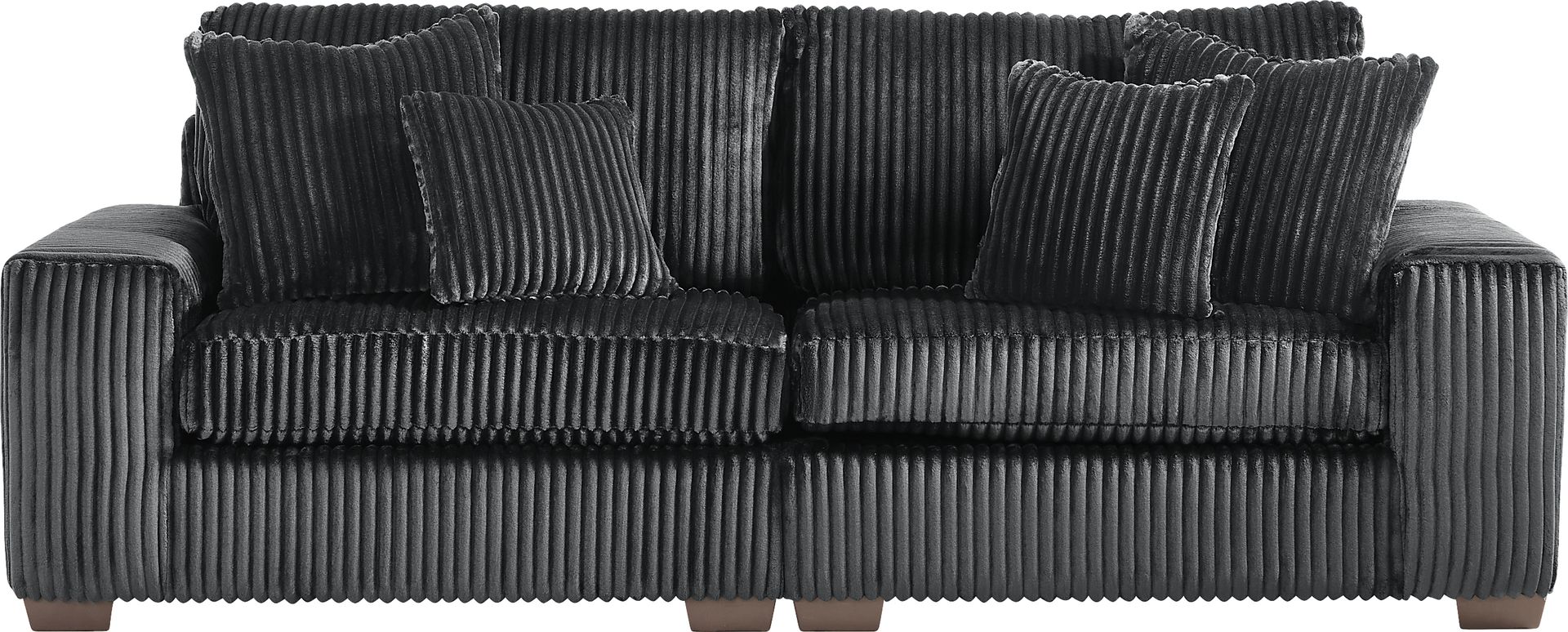 Runway inspiration meets unapologetic indulgence in Lexford Park, blending the poise of high-fashion with the ease of everyday relaxation. Clad in ribbed black corduroy, this sectional features a symmetrical pair of chaise lounges that meet at the center to form a sweetheart-inspired two-seater. Whether you're stretching out solo or sharing the moment, the generous seat depth offers plenty of room for one or more to sink into sumptuous comfort. Low profile track arms cinch the look with a slight contemporary edge that adds a chic detail to the breathtaking silhouette. Reversible back and seat cushions make it easy to fluff up the sectional and make it as ready for a close-up as you are to relax. Upholstery: 100% Polyester. Cleaning Instructions: Use water-based cleaning agents or foam.