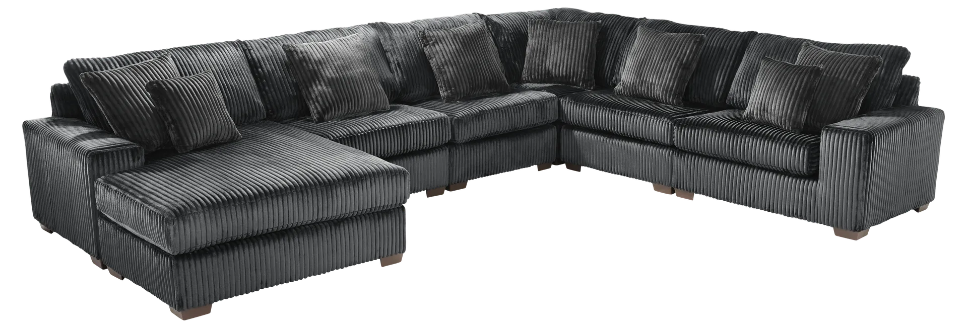 Runway inspiration meets unapologetic indulgence in Lexford Park, blending the poise of high-fashion with the ease of everyday relaxation. Tailored for sumptuous comfort, this sectional features a left arm facing chaise lounge and a right arm facing chair that create an arrangement full of balance and harmony with a generous depth of seating for one or more to unwind in style. Clad in ribbed black corduroy, low profile track arms cinch the look with a slight contemporary edge that adds a chic detail to the breathtaking silhouette. Reversible back and seat cushions make it easy to fluff up the sectional and make it as ready for a close-up as you are to relax. Upholstery: 100% Polyester. Cleaning Instructions: Use water-based cleaning agents or foam.