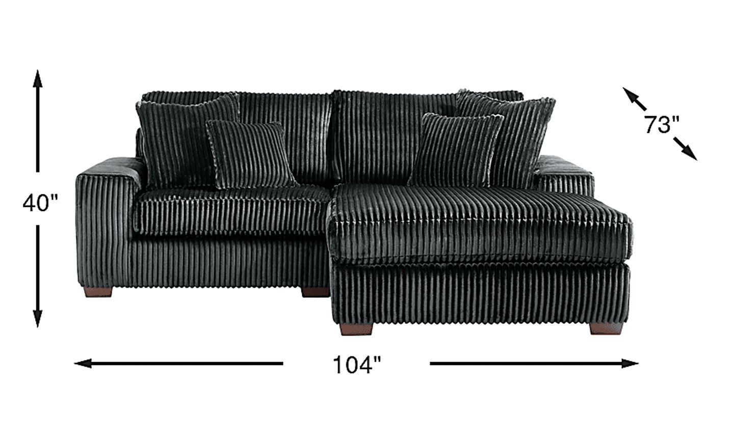 Runway inspiration meets unapologetic indulgence in Lexford Park, blending the poise of high-fashion with the ease of everyday relaxation. Tailored for sumptuous comfort, this sectional features a left arm facing chair and a right arm facing chaise lounge that create an arrangement full of balance and harmony with a generous depth of seating for one or more to unwind in style. Clad in ribbed black corduroy, low profile track arms cinch the look with a slight contemporary edge that adds a chic detail to the breathtaking silhouette. Reversible back and seat cushions make it easy to fluff up the sectional and make it as ready for a close-up as you are to relax. Upholstery: 100% Polyester. Cleaning Instructions: Use water-based cleaning agents or foam.