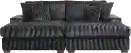 Runway inspiration meets unapologetic indulgence in Lexford Park, blending the poise of high-fashion with the ease of everyday relaxation. Clad in ribbed black corduroy, this sectional features a symmetrical pair of chaise lounges that meet at the center to form a sweetheart-inspired two-seater. Whether you're stretching out solo or sharing the moment, the generous seat depth offers plenty of room for one or more to sink into sumptuous comfort. Low profile track arms cinch the look with a slight contemporary edge that adds a chic detail to the breathtaking silhouette. Reversible back and seat cushions make it easy to fluff up the sectional and make it as ready for a close-up as you are to relax. Upholstery: 100% Polyester. Cleaning Instructions: Use water-based cleaning agents or foam.