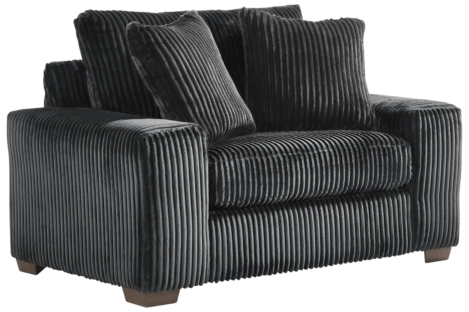 Runway inspiration meets unapologetic indulgence in Lexford Park, blending the poise of high-fashion with the ease of everyday relaxation. Tailored for sumptuous comfort, this sectional features a left arm facing chair, an armless chair and a right arm facing chaise that create an arrangement full of balance and harmony with a generous depth of seating for one or more to unwind in style. Clad in ribbed black corduroy, low profile track arms cinch the look with a slight contemporary edge that adds a chic detail to the breathtaking silhouette. Reversible back and seat cushions make it easy to fluff up the sectional and make it as ready for a close-up as you are to relax. Upholstery: 100% Polyester. Cleaning Instructions: Use water-based cleaning agents or foam. Accent pillows not included.