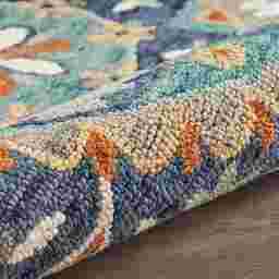 Complete your home with our hand-tufted Liah Blue 4' Round Rug. Made from 100% wool, this rug combines softness, durability, and natural beauty. Its teal and multicolor hues create a vibrant palette, while the traditional floral design adds timeless charm. Perfect for any room from dining room to bedroom, its intricate patterns and plush texture offer both comfort and sophistication. Transform your home with a rug that blends traditional elegance and modern appeal. Hand-Tufted with tight looped construction to minimize natural wool shedding & fraying. Reinforced with 100% cotton backing for durability and high-quality construction. Perfect shape and style for kitchen, dining room, bedroom, or living room. Soft 0.5 pile height for everyday comfort & heavy duty feel.