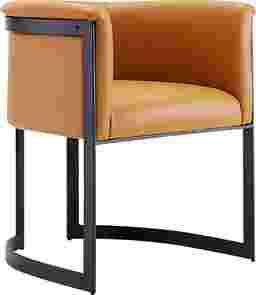 Made for entertaining, the Lifeworth brown armchair blends comfort and chic modern design. Whether it is a family dinner or a friendly event, your guests will feel right at home once they take a seat. With rich faux leather fully covering the plush seat, sides, and back, the Lifeworth provides an inviting experience and a timeless appeal. The unique geometric frame contours the entire seat, creating a confidently durable space to kick back and relax.