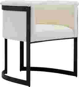 Made for entertaining, the Lifeworth cream armchair blends comfort and chic modern design. Whether it is a family dinner or a friendly event, your guests will feel right at home once they take a seat. With rich faux leather fully covering the plush seat, sides, and back, the Lifeworth provides an inviting experience and a timeless appeal. The unique geometric frame contours the entire seat, creating a confidently durable space to kick back and relax.